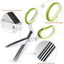 Chop herbs in seconds with this 5-blade herb scissors set — the ultimate time-saver for any kitchen. Featuring five ultra-sharp stainless steel blades, it cuts fresh herbs like lettuce, cilantro, parsley, and green onions evenly and effortlessly. The soft, non-slip TPR handle offers a comfortable grip for fatigue-free chopping, while the included cleaning comb and protective cover make cleanup a breeze. Dishwasher safe and easy to maintain, this versatile tool isn’t just for cooking — it’s also perfect for shredding paper for crafts or office use. A must-have gadget for chefs, home cooks, and DIY enthusiasts alike.